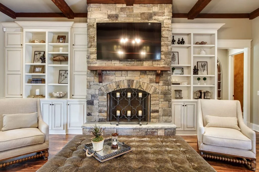 · 42” direct vent gas fireplace with remote control and gas logs per plan